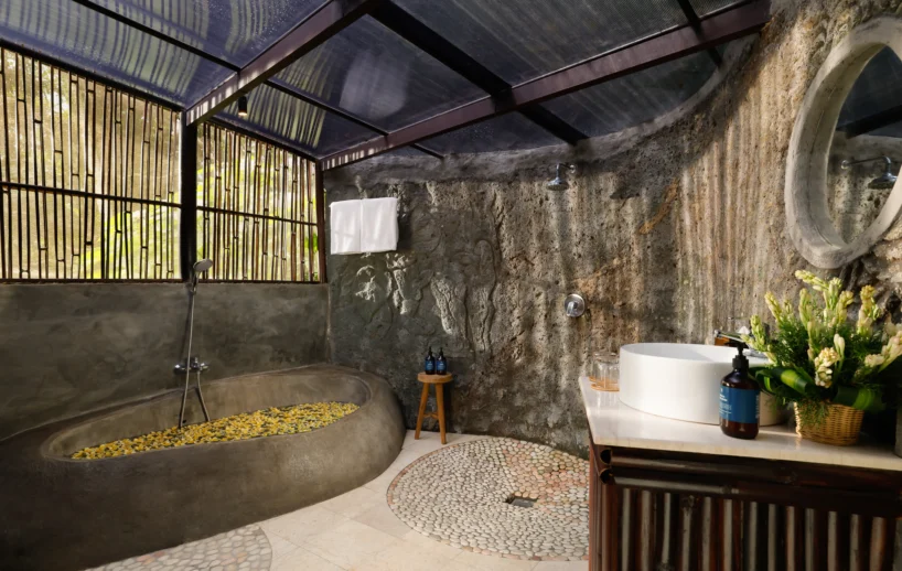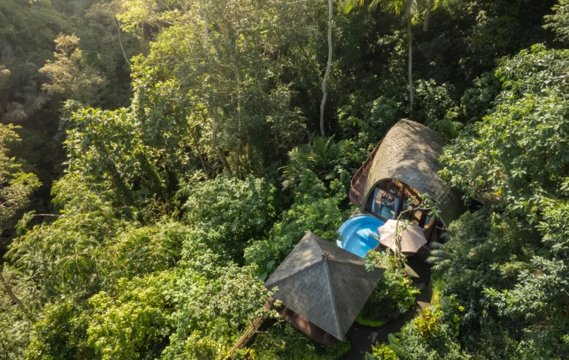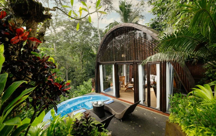 Experience the simple yet magical romantic couple getaway, our Bamboo Villa offers stunning forest jungle views and an outside living area with a balcony. The villa includes a closed bathroom, mini bar, and a private plunge pool, creating an intimate and luxurious retreat.