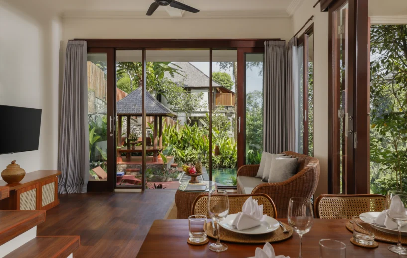 Discover the charm of our Exotic Balinese Villa, designed for ultimate privacy and comfort. These two-story villas feature queen-sized beds and private entrances to each bedroom. Each villa has its own private pool and a fully equipped kitchen, making it ideal for intimate gatherings. The close living room provides a cozy space to relax and unwind.